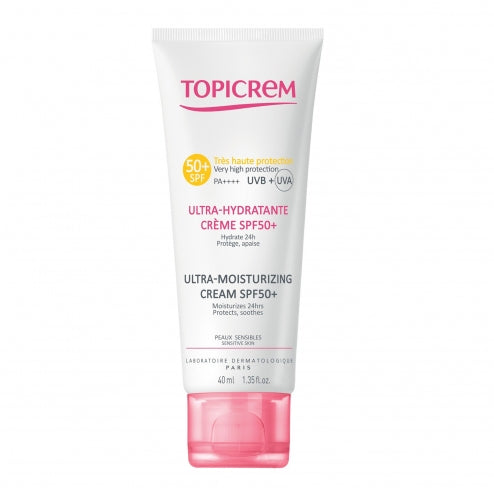 Topicrem Essentials Ultra-Moisturizing Face & Body Cream SPF50+ 40ml is a moisturizing cream for the face and the body and is suitable for the whole family (baby, child, adult). It protects and moisturizes the skin during 24h.