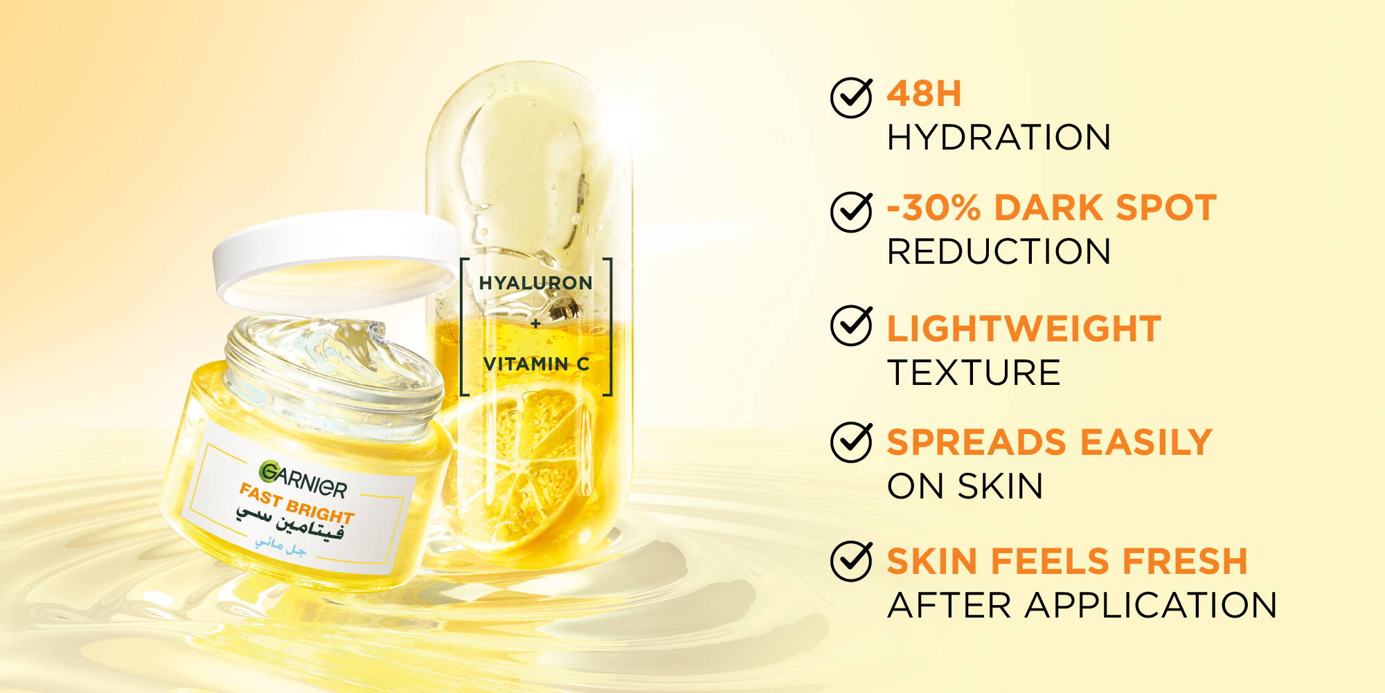 Garnier - Skin Active - Fast Bright - Vitamin C Water Gel Moisturizer - 48 Hours Hydration - Anti Dark Spots - 30 ML