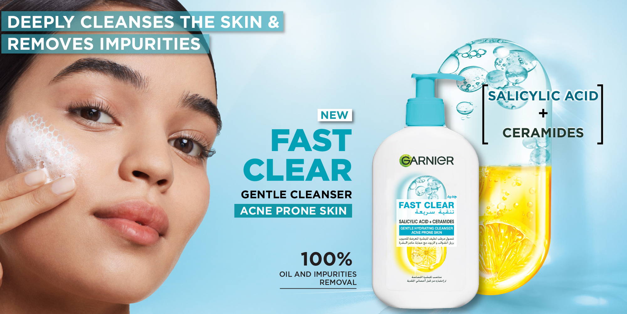 Garnier Fast Clear Gentle Cleanser Hydrating Face Wash for Acne Prone Skin 250ml