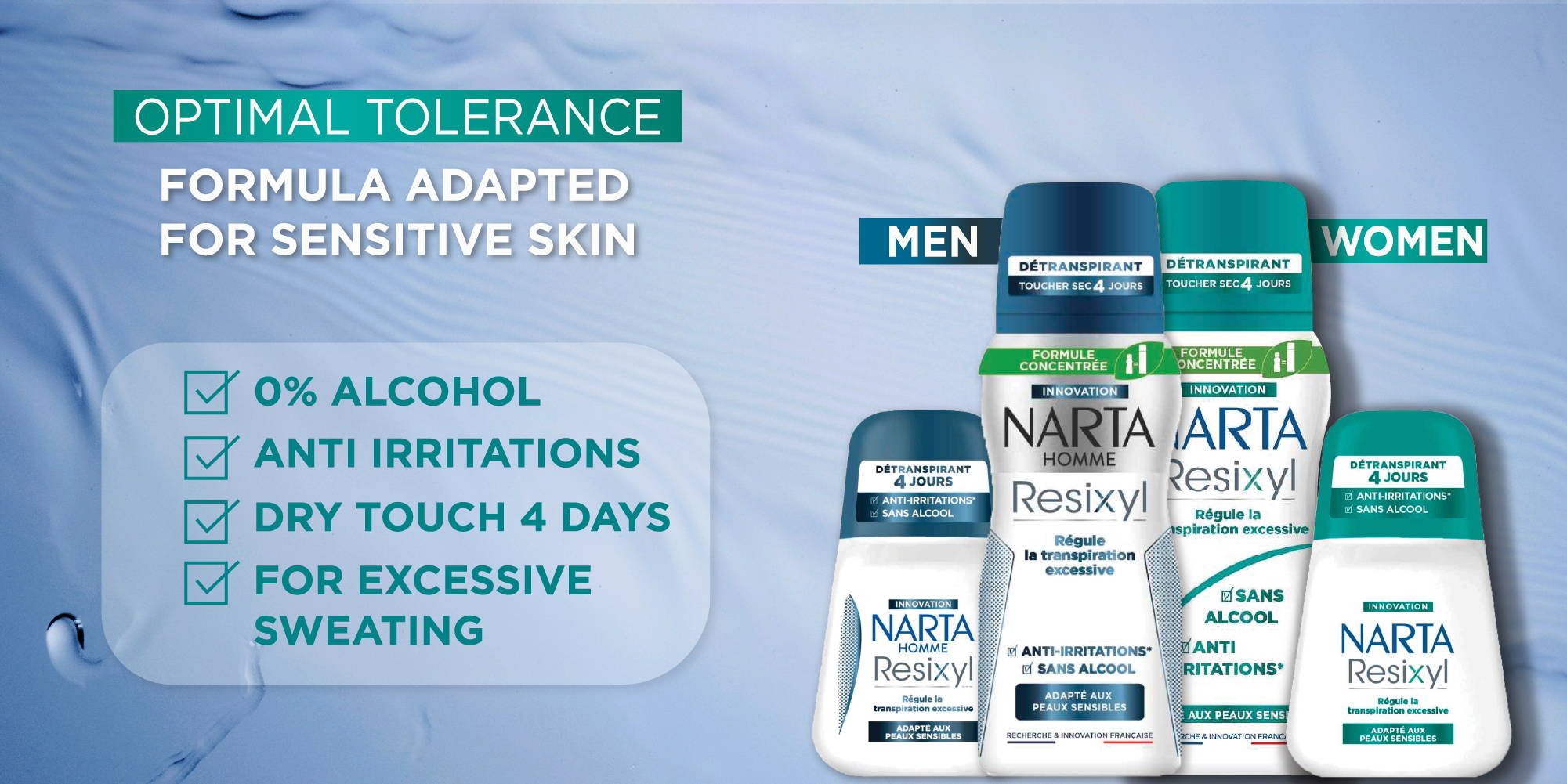 Narta - Resixyl - Roll On Deodorant for Sensitive Skin & Excessive Sweating - 48H Anti-Perspirant Protection - For Women - 50ml