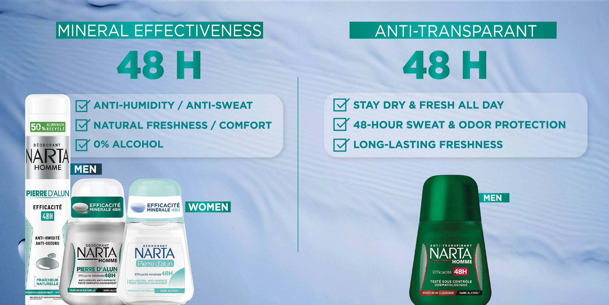 Narta - Classic Fresh - 48H Roll On Deodorant - Long-Lasting Freshness for Men - 50 ml