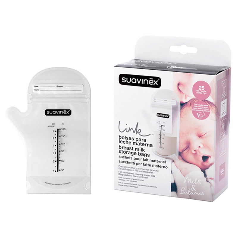 Storage bags are disposable Suavinex are pre-esterelizadas and with a capacity of approximately 180ml. These bags allow tightly preserve freshly drawn milk in the refrigerator or freezer. They are designed to be stacked one above the other, since saving space when stored is very important.