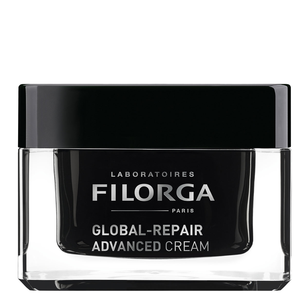 Apply Filorga Global-Repair Advanced Youth Cream Repair 50ml to the face, neck, and décolleté. Apply upward movements from the neckline towards the oval of the face to sculpt the contour of the face.