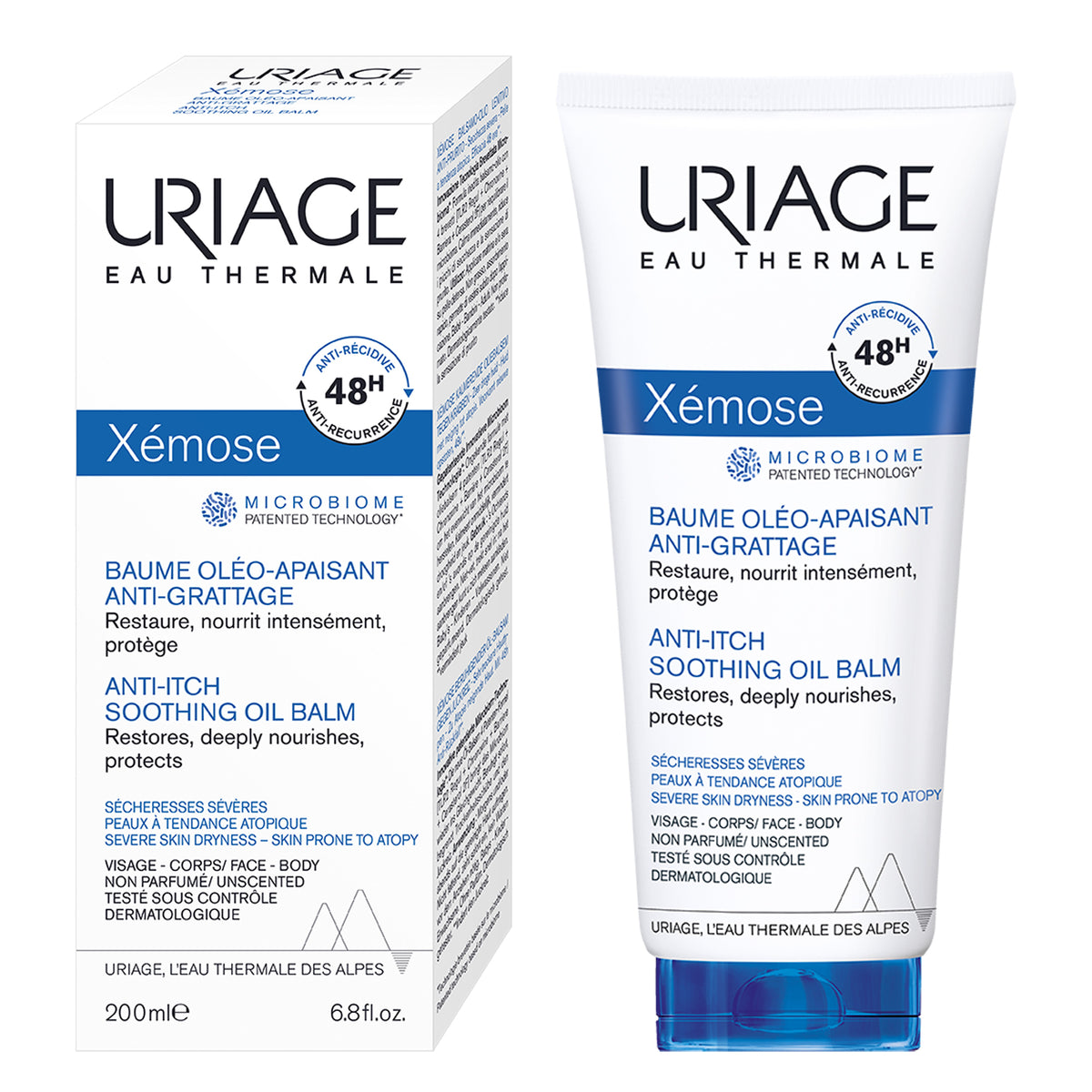 Uriage Xémose Oleo-Soothing Anti-Itching Balm 200ml is a treatment indicated for severe dryness and atopic-prone skin. Its innovation consists of an anti-recurrence lipid-replenishing oil balm lasting 48 hours. Its 3 patented complexes immediately soothe itching sensations and dryness peaks. Enriched with Illipé oil, its unique melting texture leaves a non-greasy protective film for long-lasting comfort. It penetrates quickly and allows rapid dressing.
