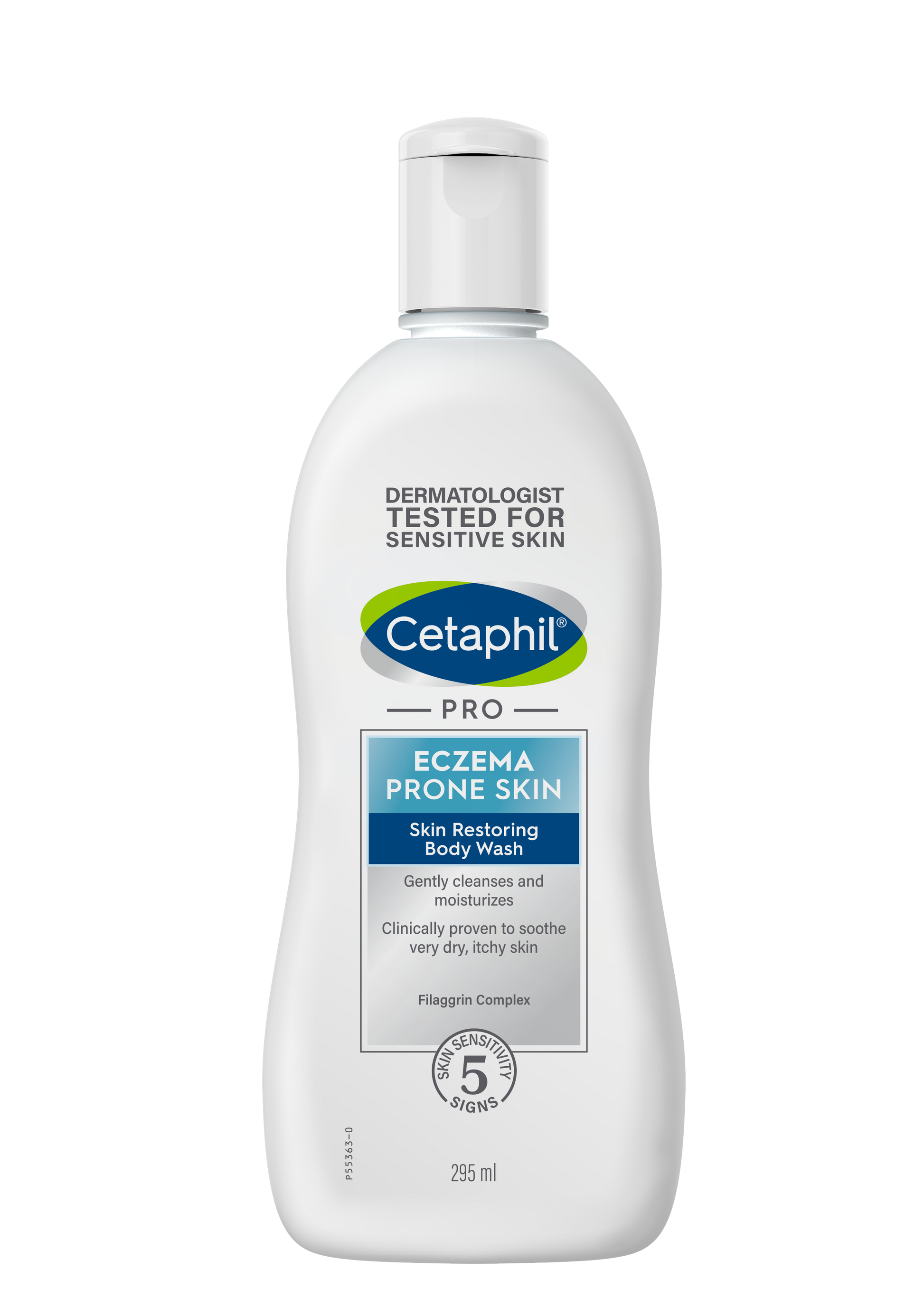 - Start your sensitive skin care routine with PRO Eczema-Prone Skin Restoring Body Wash, clinically proven to gently cleanse sensitive skin. This creamy, soap free foaming cleanser is mild enough to use daily on body, hands and face.