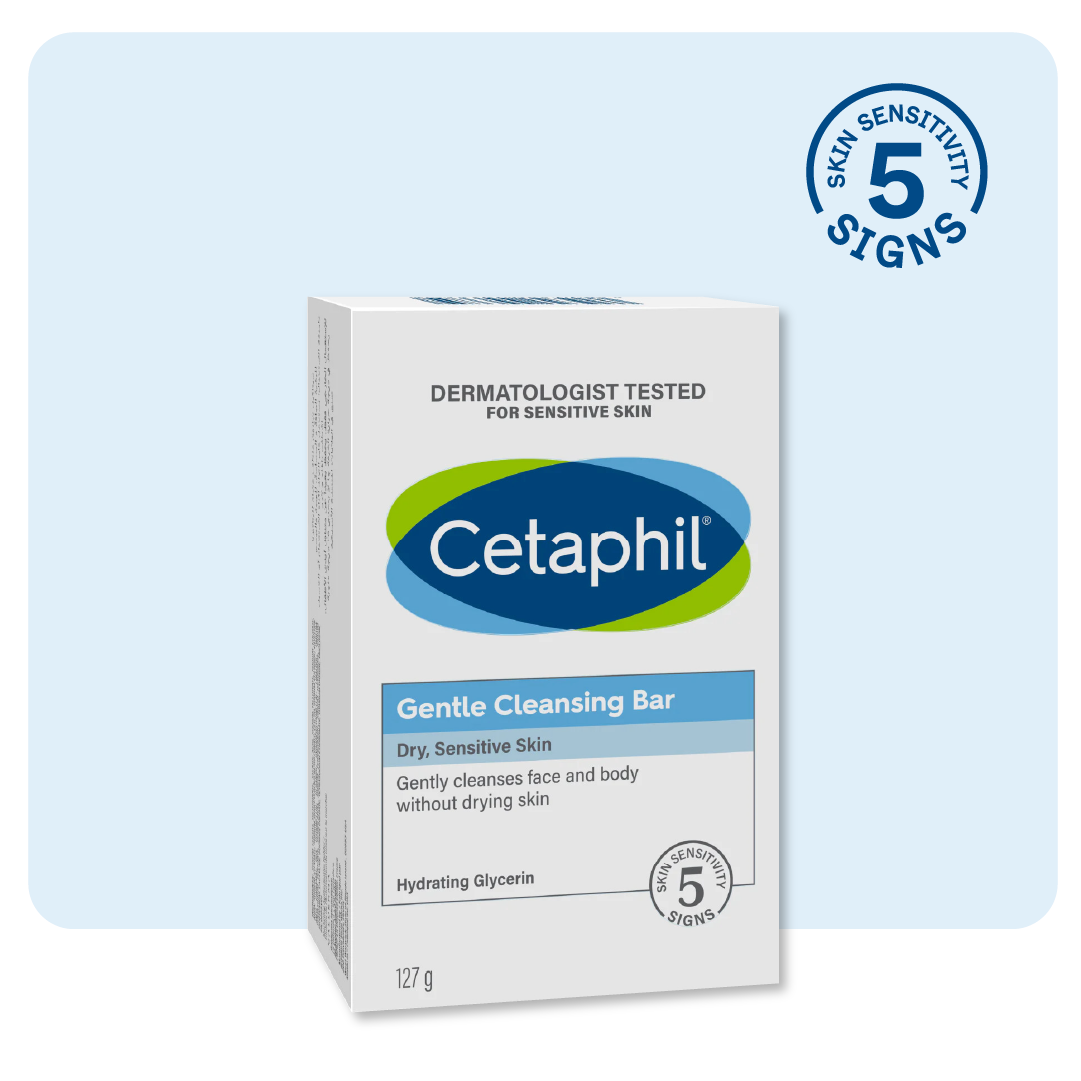 This soap free bar is formulated with 5 nourishing ingredients to gently cleanse the skin without drying it out, maintains the skin's natural moisture barrier, and leaves the skin feeling soft and clean. Defends against 5 signs of skin sensitivity, including a weakened skin barrier, irritation, roughness, tightness and dryness.