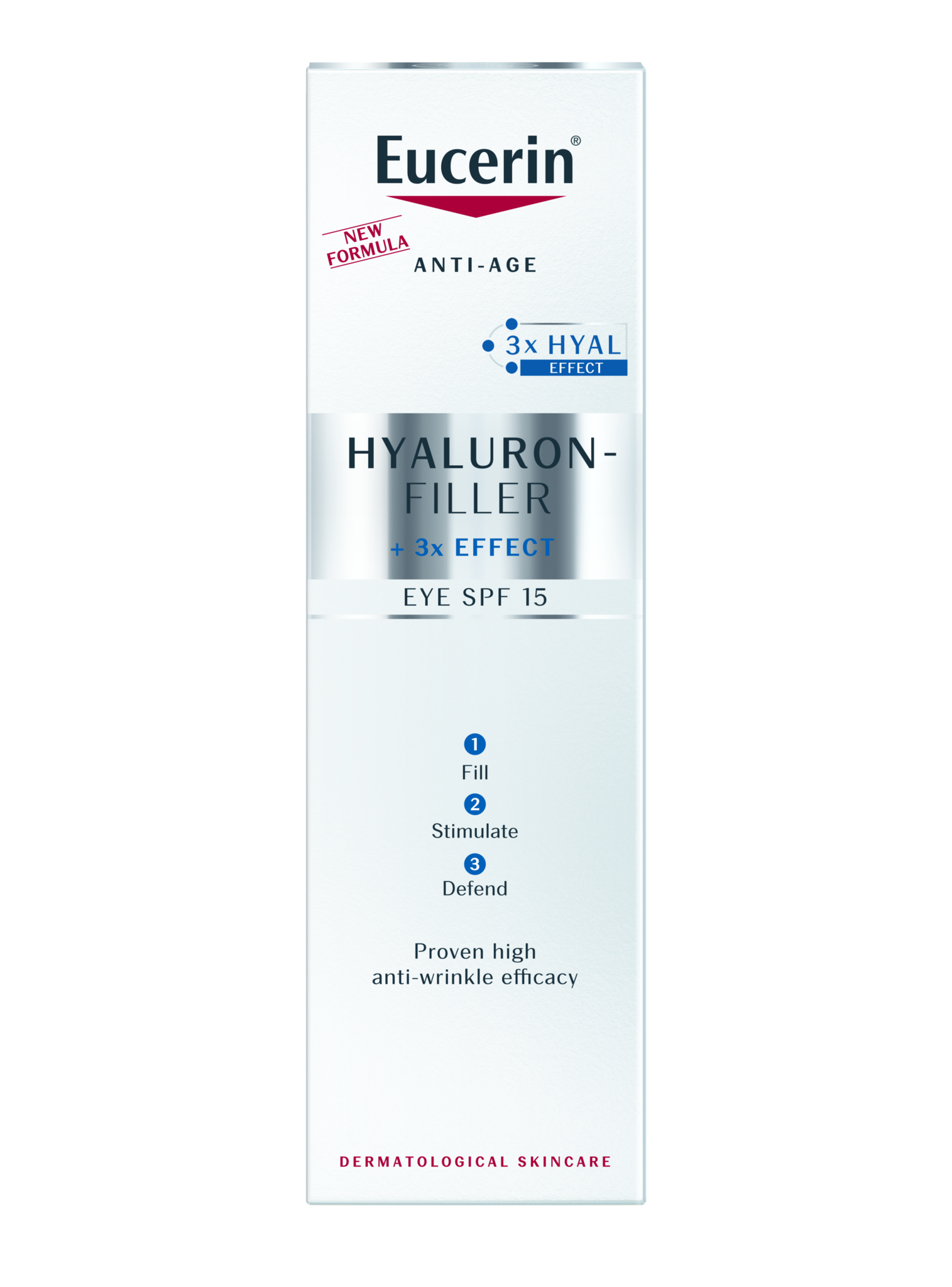 Eucerin Hyaluron-Filler Eye Cream was formulated specifically to target ‘crows feet’ wrinkling in the delicate eye area. The formula with a combination of high and low molecular Hyaluronic Acid works on both existing and emerging wrinkles and additonally contains bio-active Glycine Saponin. SPF 15 plus UVA protection reduces premature ageing and the deepening of eye area wrinkles to leave the skin looking smoother and more youthful.