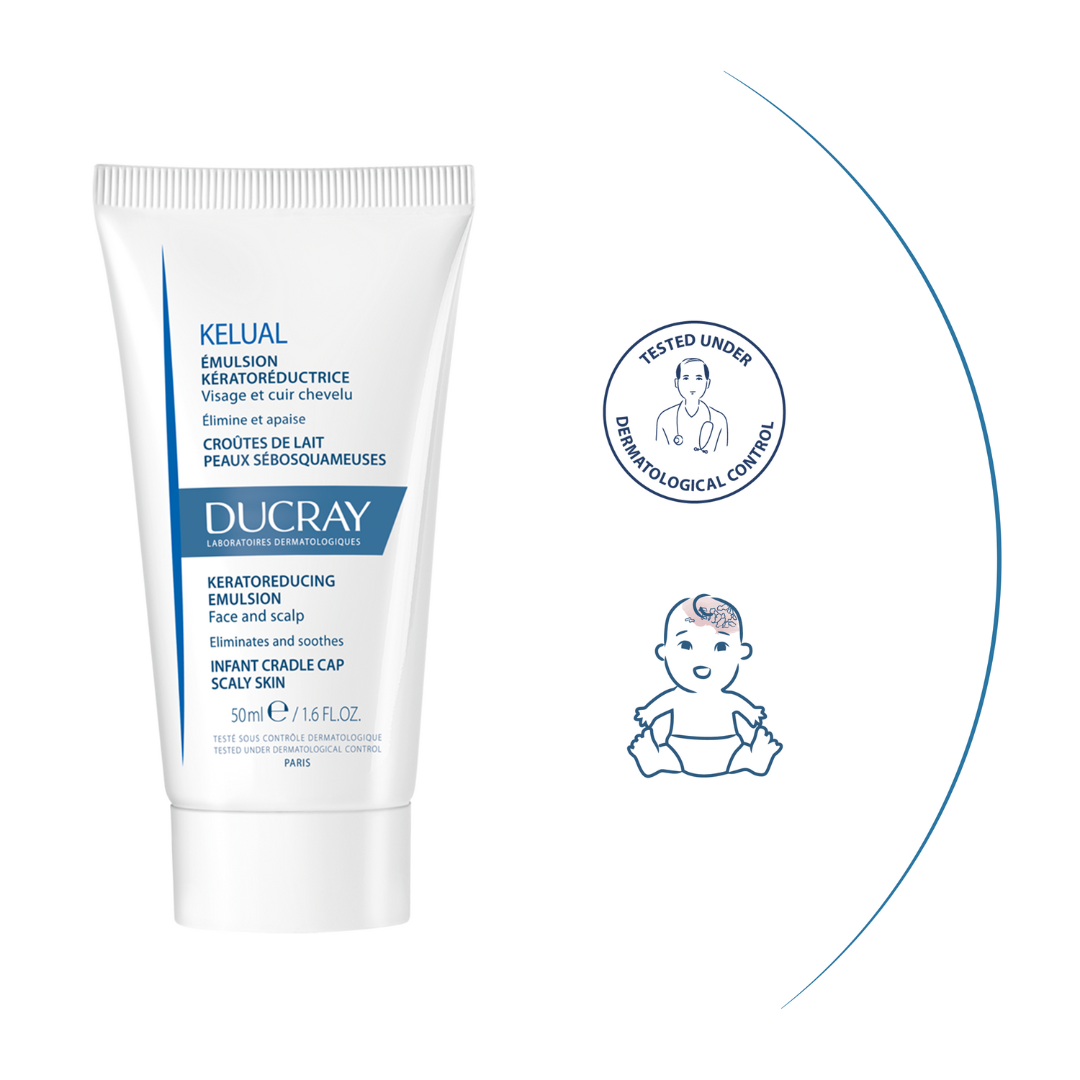 This gentle emulsion helps effectively remove cradle cap from infants’ scalps while respecting delicate skin. Its hydrating* formula, enriched with Keluamid and glycerin, works to soften and lift cradle cap scales, allowing crusts to detach easily while soothing the scalp. The result is a cleaner, more comfortable scalp without irritation.