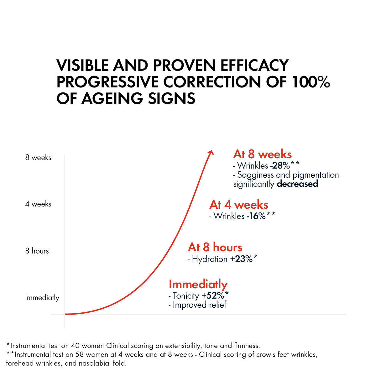 • Proven and visible efficacy on wrinkles, sagginess, tonicity, pigmentation