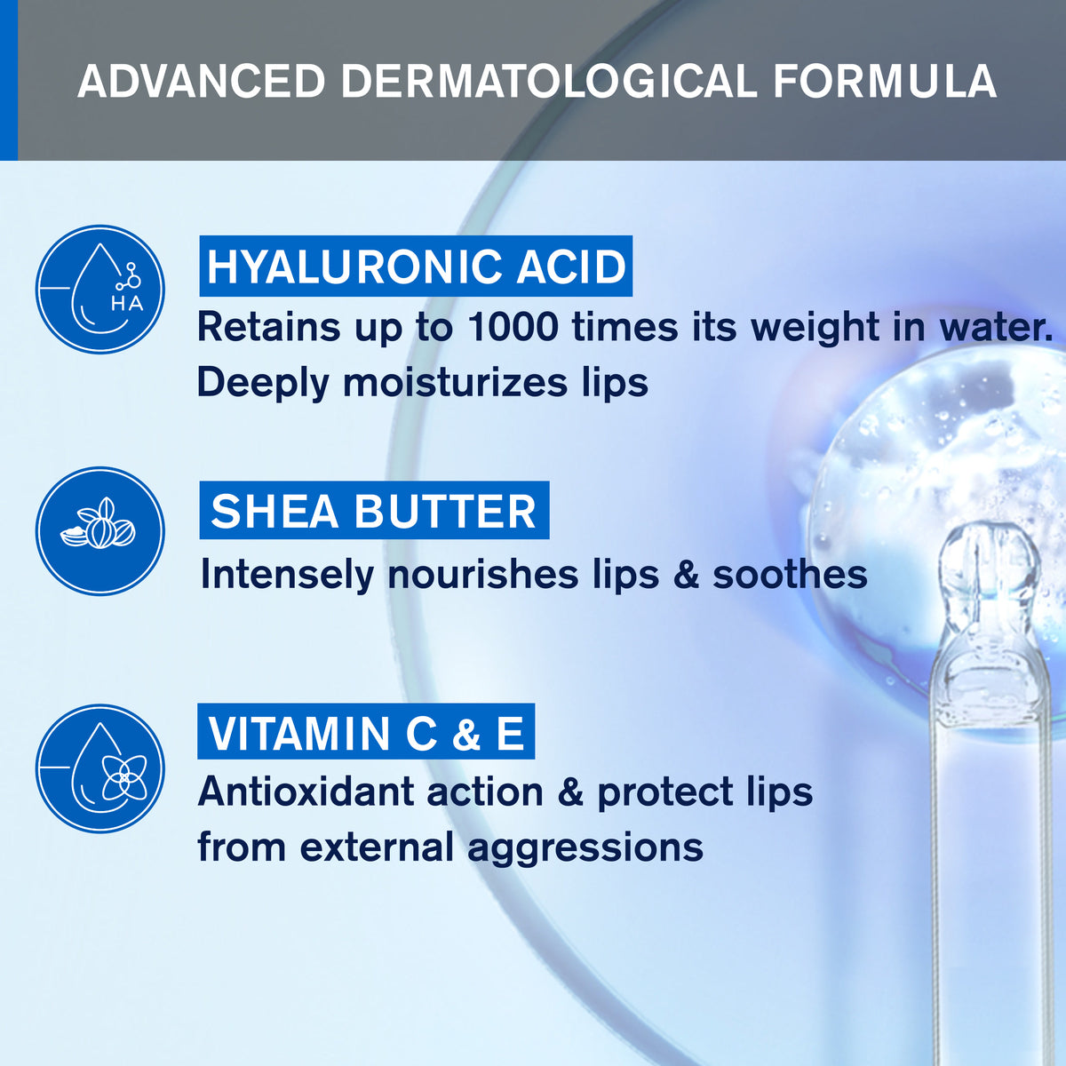 Shea butter brings intense nutrition for dried out lips, protecting them against external aggressions.