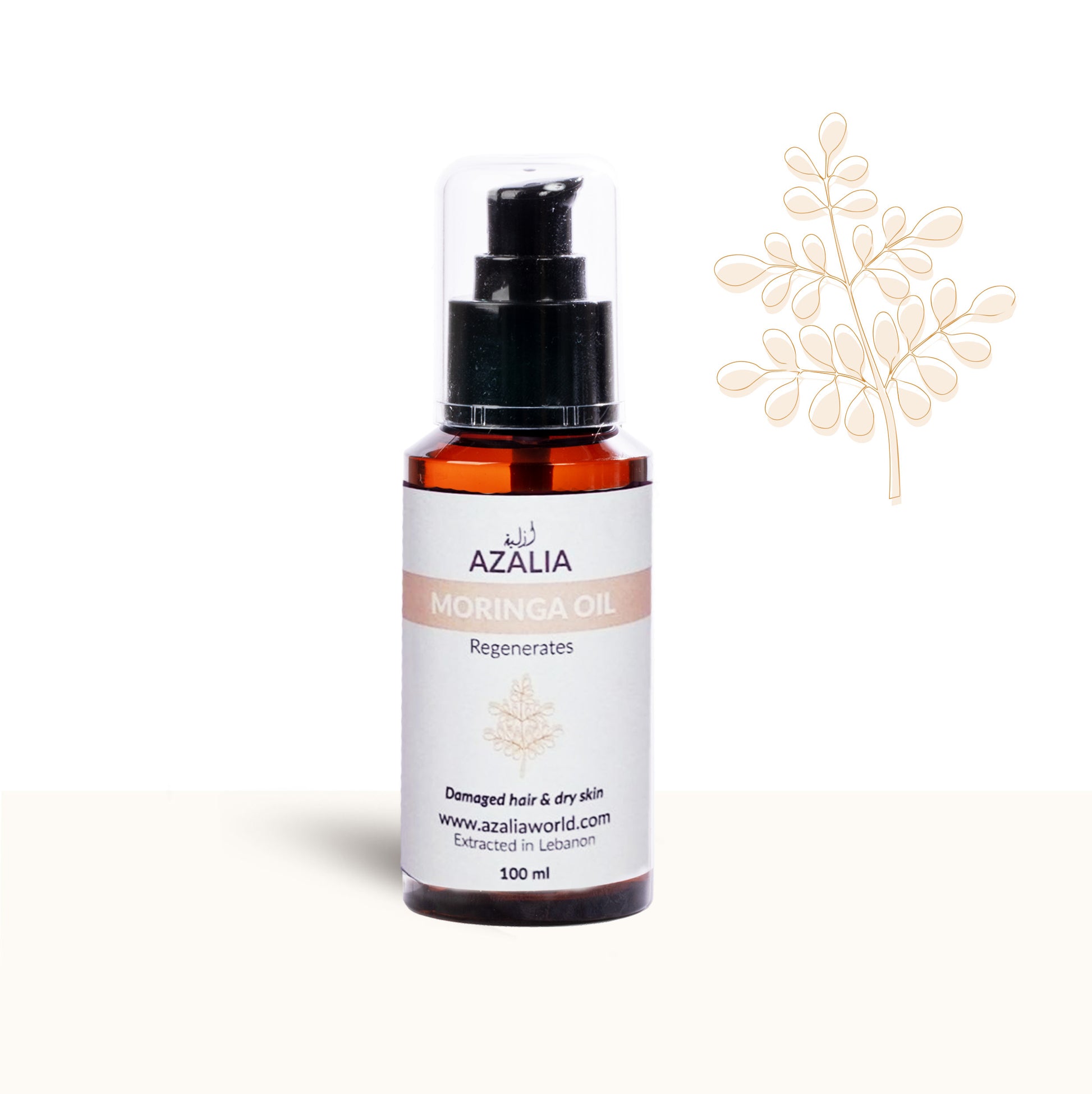 Moringa oil Extracted from seeds of the most nutrient-dense tree on the planet, it is a rich source of powerful antioxidants, vitamins, and minerals that meets all your skin needs. Its lightweight texture deeply moisturizes the skin without leaving a greasy residue. it soothes irritation, fights acne, and promotes clearer, healthier skin. Incorporating moringa oil into your skincare routine can help you achieve smoother, more radiant skin with ease.
