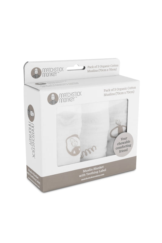 The 100% luxury organic cotton muslins have a BPA free chewable silicone teething label, helping to keep your little one calm at all time.
