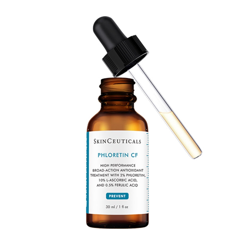 Phloretin CF features a patented synergistic combination of 2% phloretin, 10% pure vitamin C (l-ascorbic acid), and 0.5% ferulic acid for enhanced protection against atmospheric skin aging – environmental damage and premature signs of aging caused by free radicals from UVA/UVB, infrared radiation (IRA), and ozone pollution (O3). In addition to antioxidant protective benefits, Phloretin CF improves the appearance of discoloration, fine lines, and uneven skin tone.