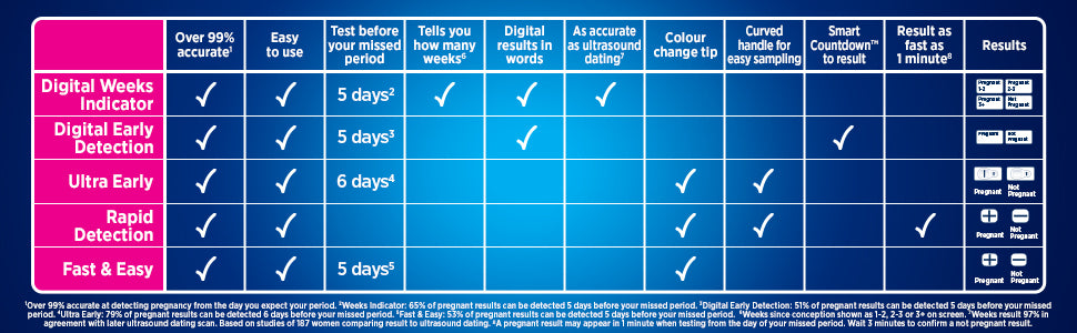 In just 2 minutes read your clear + (pregnant) or - (not pregnant) result.