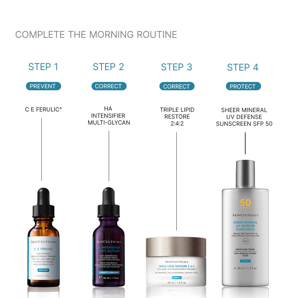 Blend the hyaluronic acid serum into skin. If using in the morning, apply after a SkinCeuticals vitamin C antioxidant serum and before a SkinCeuticals sunscreen