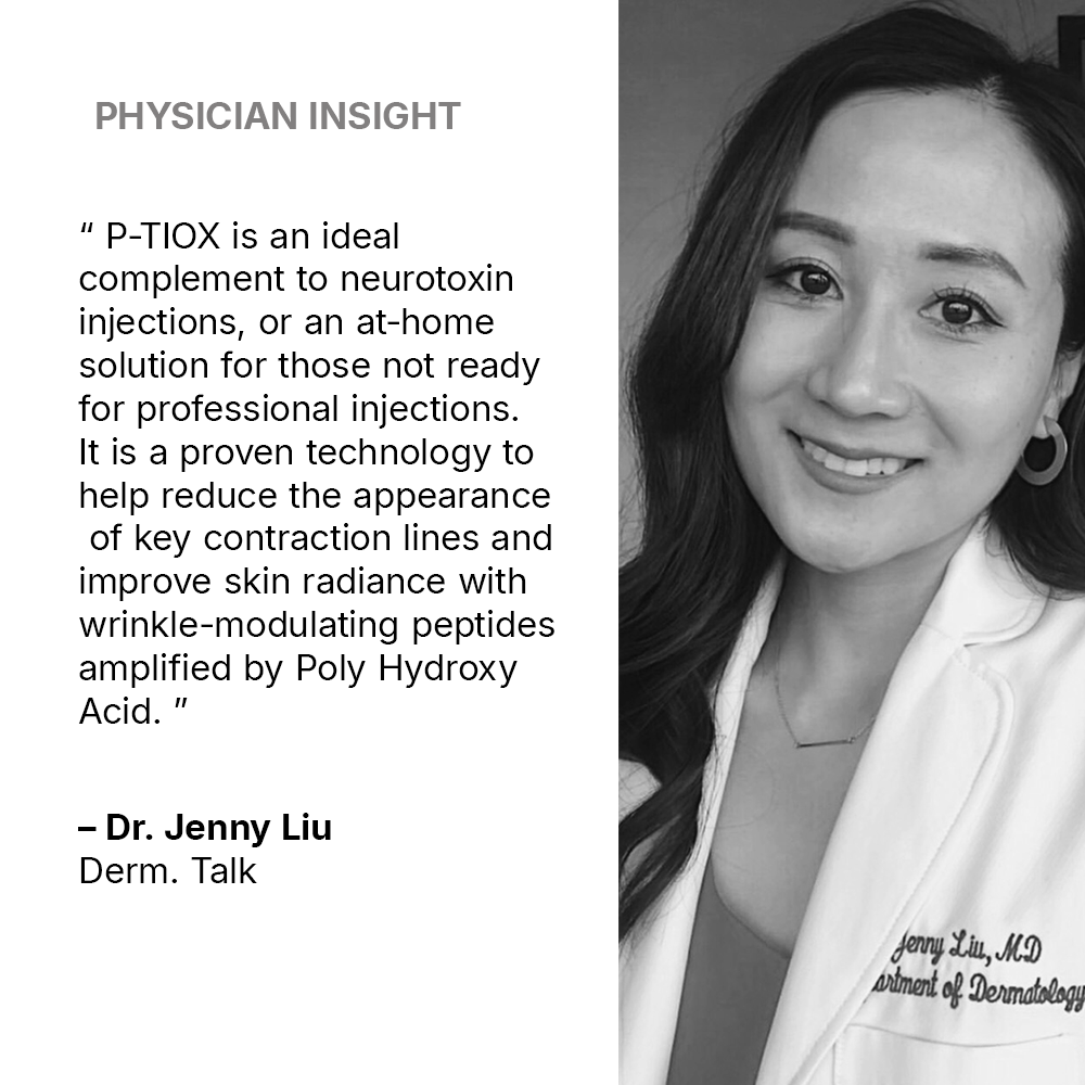 P-TIOX is an advanced peptide anti-wrinkle serum clinically proven to reduce the appearance of 9 types of wrinkles. This wrinkle modulating serum is formulated with an advanced peptide complex of hexapeptide and dipeptide, inspired by the effects of neurotoxin injectables, to help improve the appearance of key contraction lines. This first-of-its-kind peptide serum formula is amplified with potent ingredients: 5% PHA, 5% niacinamide and laminaria extra, to improve skin texture, radiance in 1 week and maximize visible anti-aging results.
