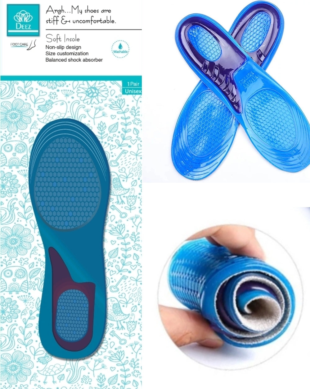 The soft Insole is very comfortable and soft, Reduces stress on joints, strengthens and tones, improves posture.