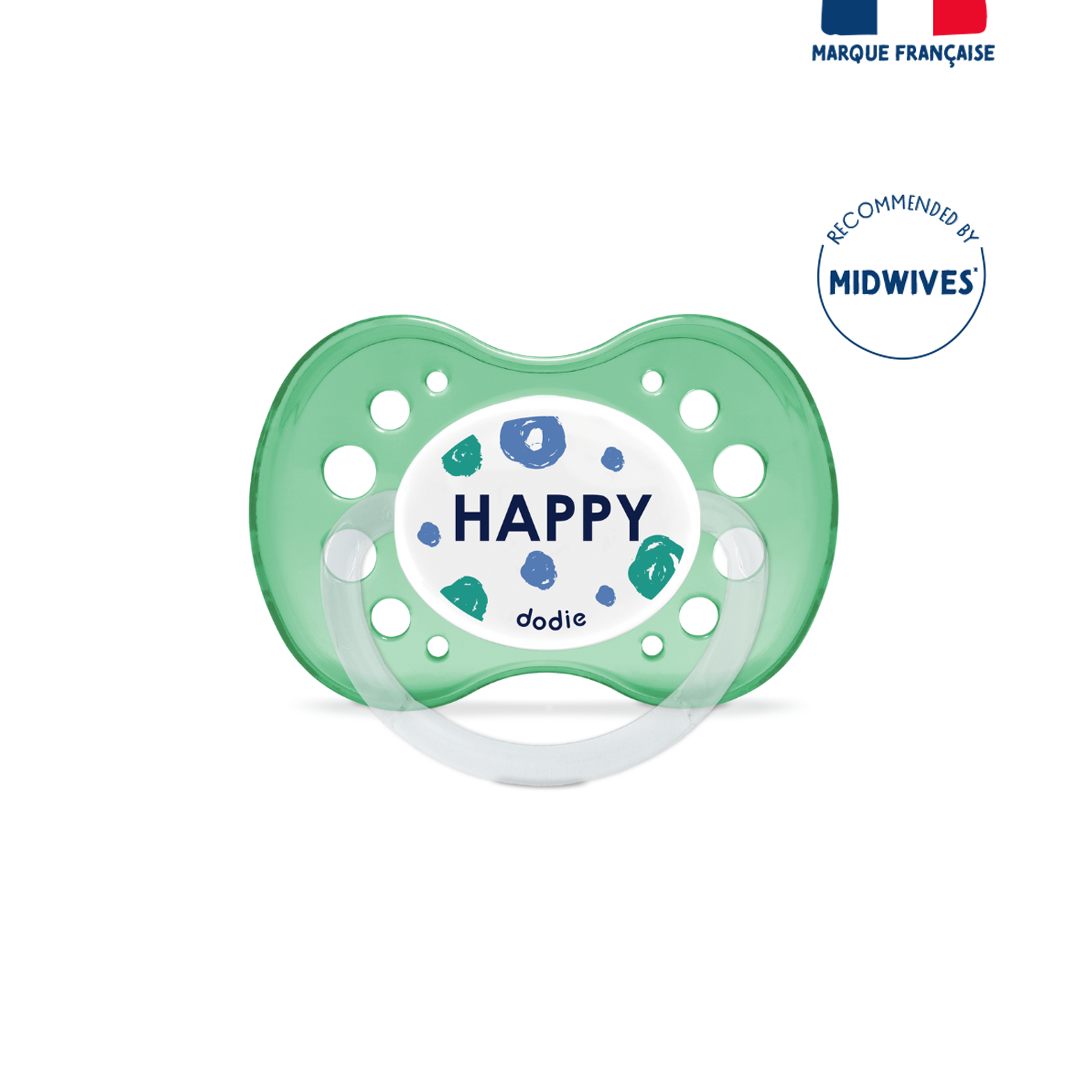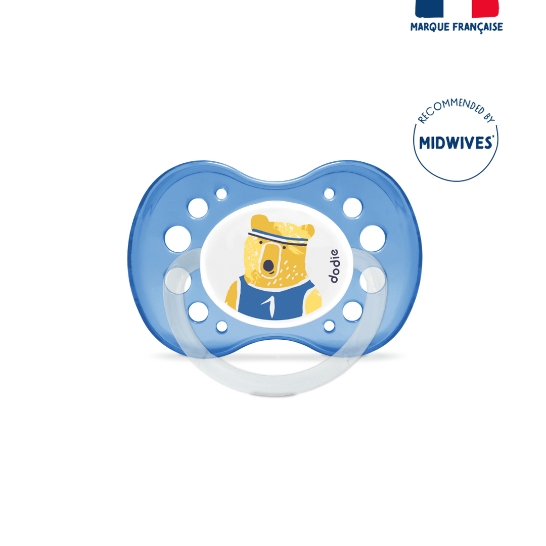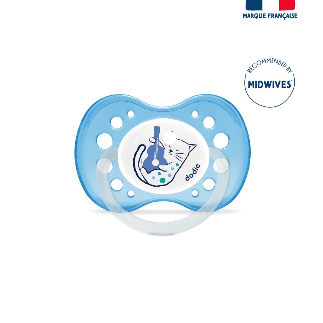Set of 2 anatomical soothers, for babies aged 18 months and up. Designed with experts, their symmetrical shape promotes proper positioning in the mouth. The ribbed silicone teat withstands the arrival of baby’s first teeth. The lightweight and ventilated shield allows for easy retention in the mouth and reduces the risk of irritation.Before first use, immerse the pacifier in boiling water for 5 minutes, then let it cool. Alternatively, sterilize with cold water using sterilization tablets.