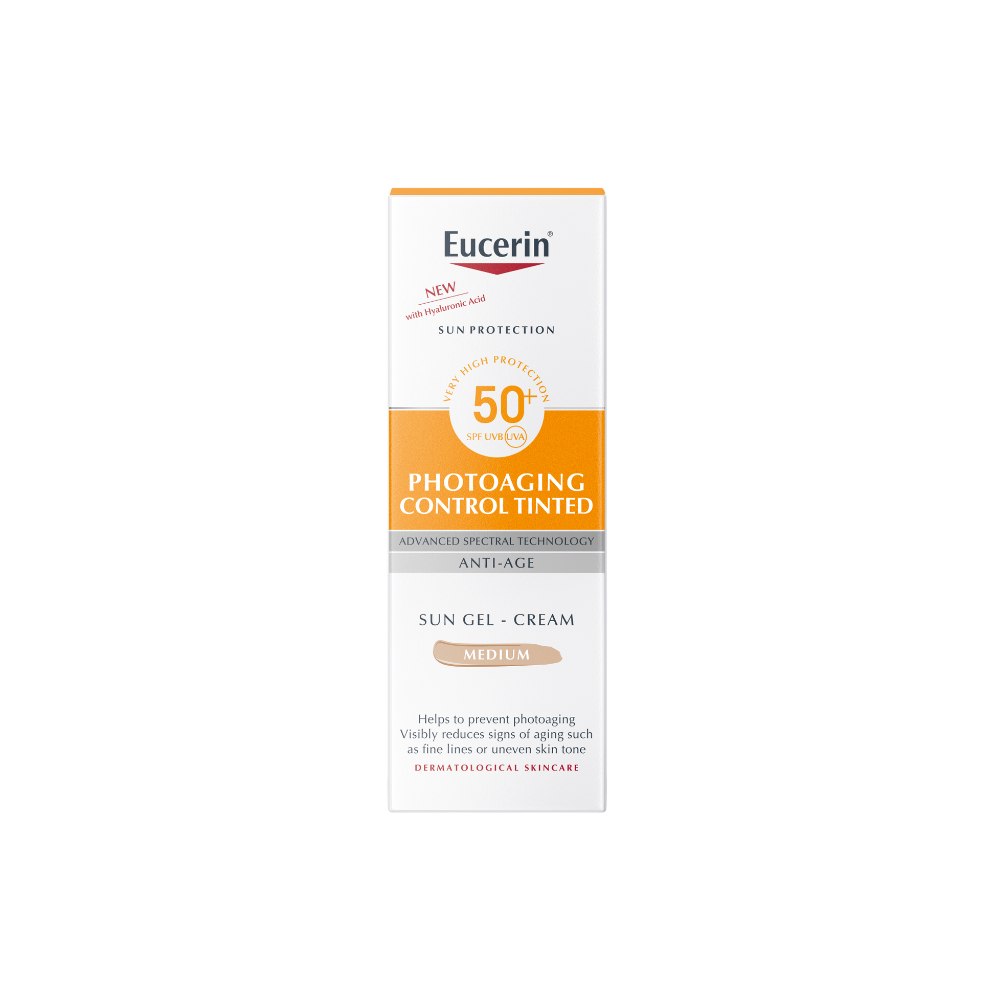 Eucerin Sun Creme Tinted Photoaging Control SPF 50+ Medium is an everyday facial sunscreen that gives all skin types that are medium in tone an even, naturally tanned-looking appearance.